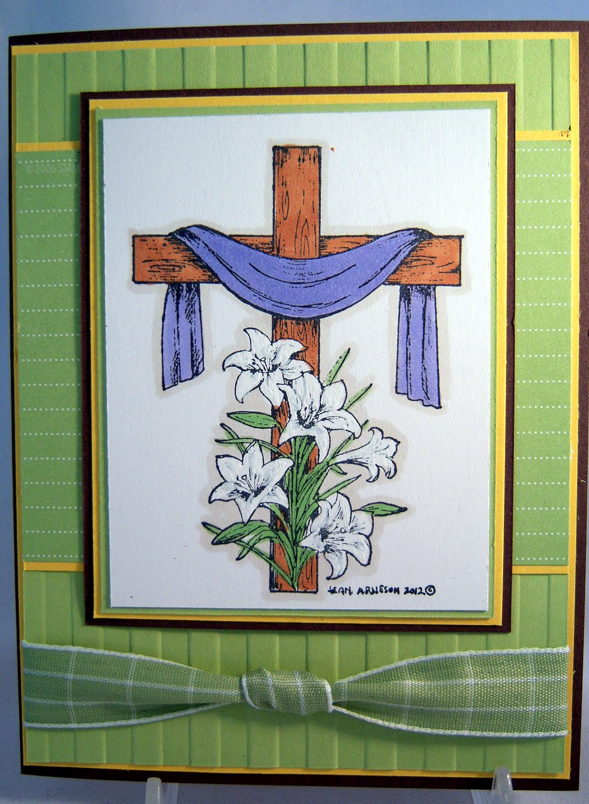 I have a few Easter stamps, but this is one of my favorites. I have not used it for a few years--so I thought it was time to give it a nod. I wanted the image to be the highlight of this card, so the only added embellishment was a ribbon. I did use a white gel pen over the lilies so they would be brighter.